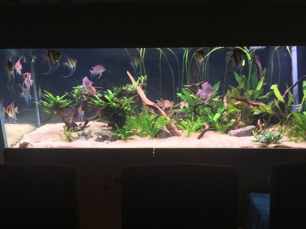 Dankje, de beplanting is nog het lastigste deel gezien het graaf gedrag van de geophagus.Prachtige combo, die geophagussen en de maanvissen! zeker ook mooie bijpassende beplanting.