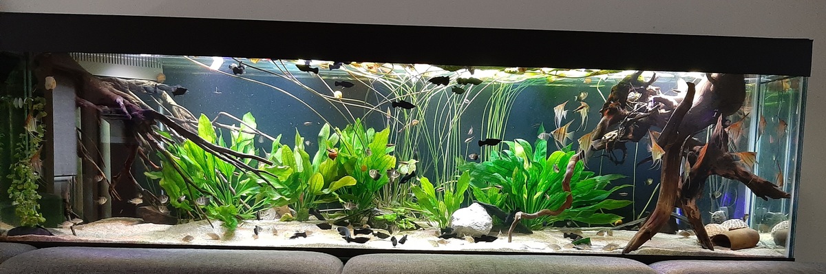 Ik heb gewoon gaten geboord in 1 van de schotten en hier doorvoeren met roosters op gezet zodat het mooi in beweging blijft.Onpraktisch, gaat overal zitten, broeinest voor slakken. Ook met een stromingspomp blijft het op een hoop liggen.