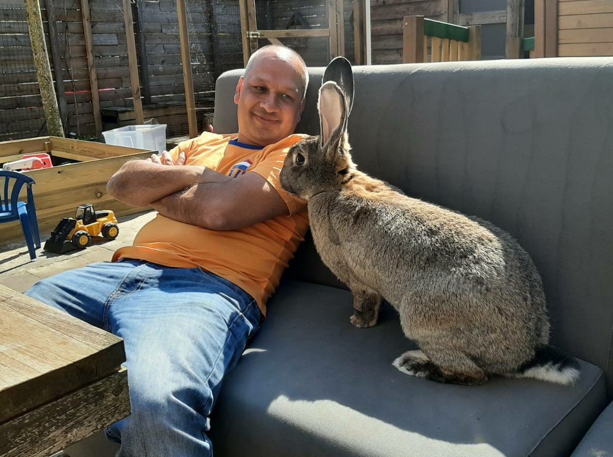 Dat konijn heeft een blik zo van wie van ons nu het knapste