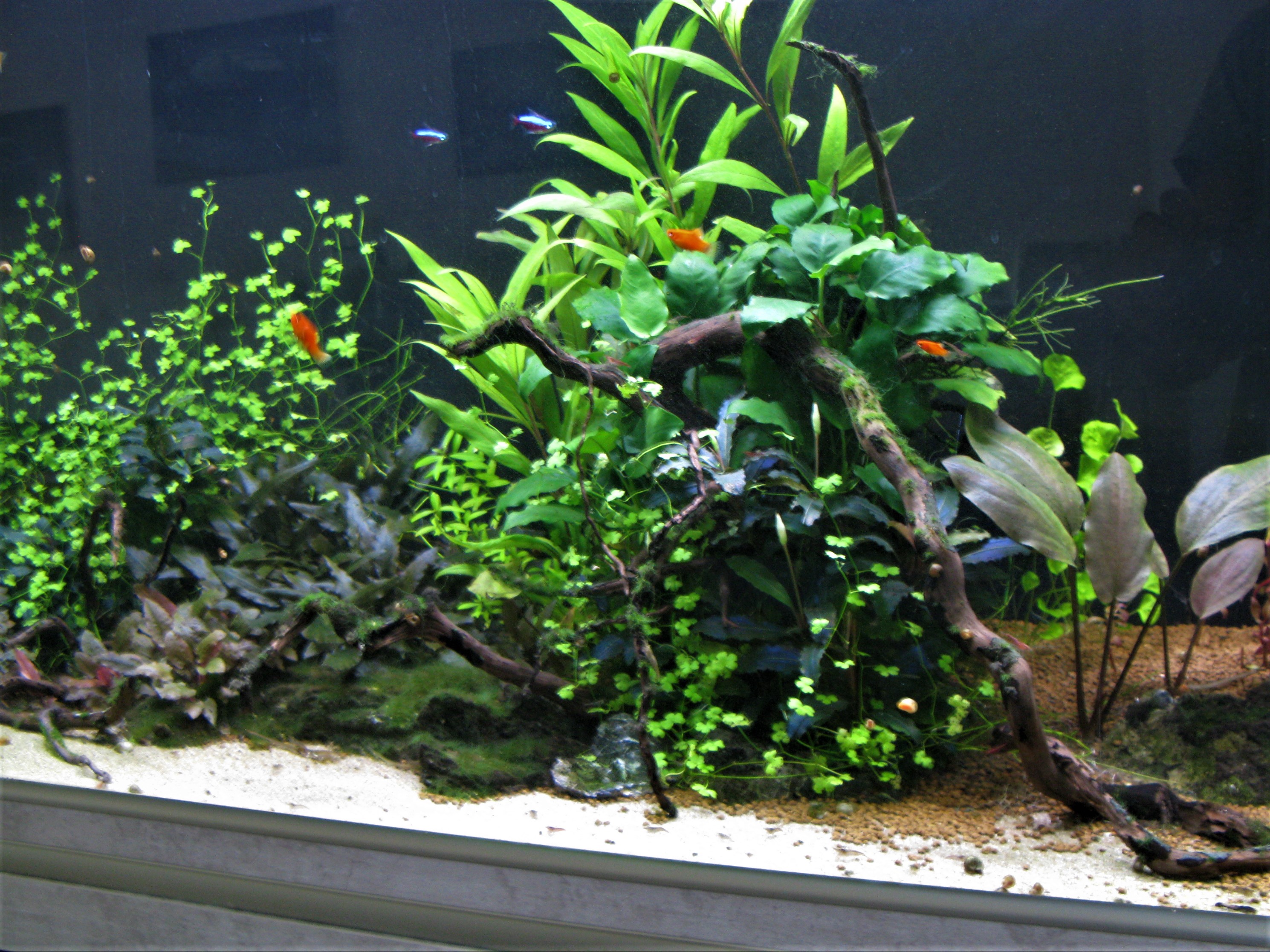 Vandaag de handen uit de mouwen dus en wat punten aangepakt morgen de fles Co2 laten vullen en miss. een snelgroeier plantje erbij en hopelijk draait de bak dan wat beter.