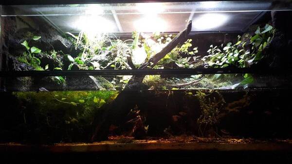 Ik kan nu alvast melden dat het paludarium aardig ver gevorderd is en nu pakweg een maand draait. Het is nog niet af maar ben dus al aardig op weg.