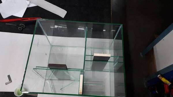 Het enige wat ik nu nog moet maken is de bioloog, afmetingen 60x50x45 van 8mm glas, en een lichtkap van 140x60x20.