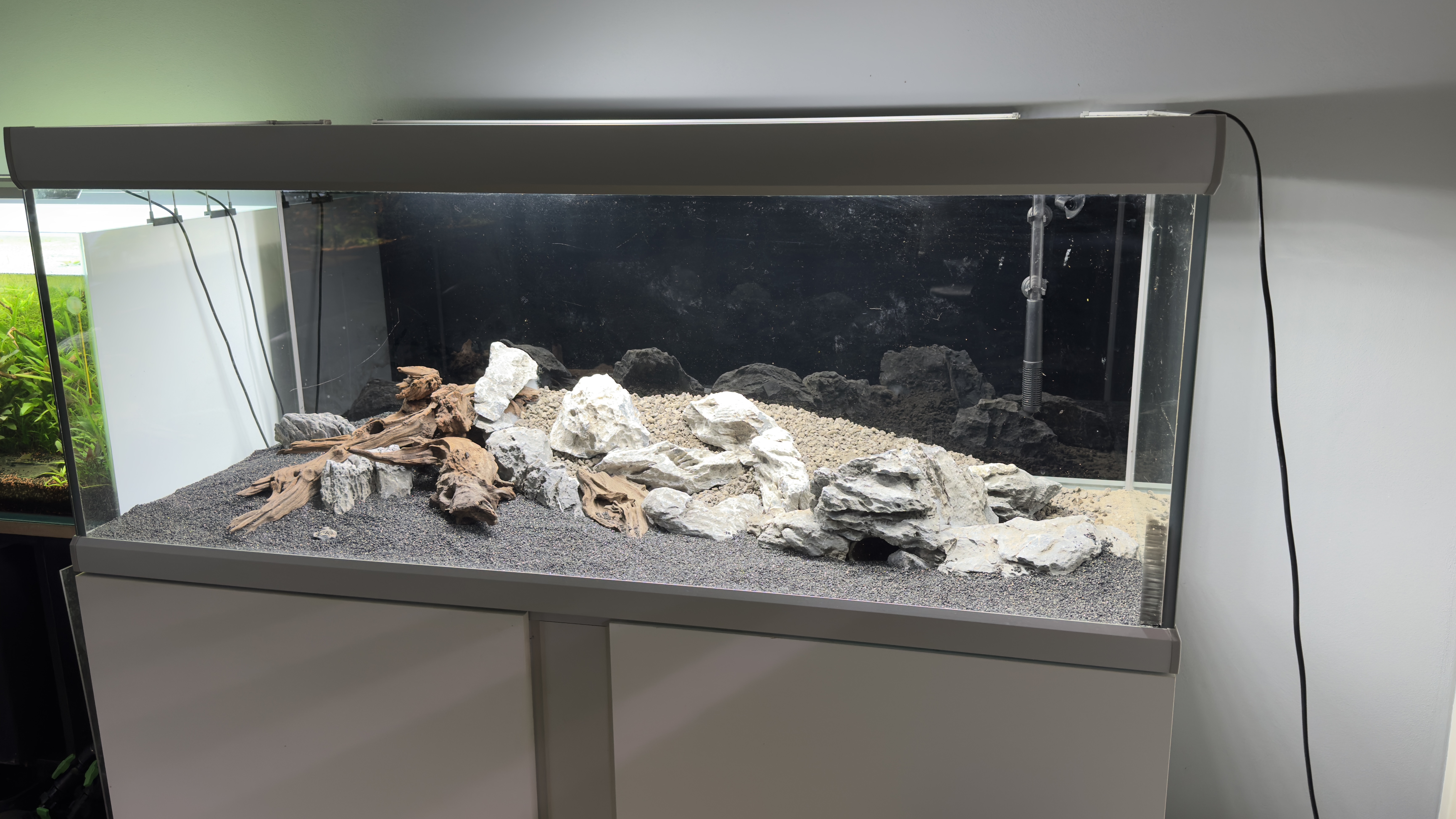 Het plan is dat ie de onderstaande aquaria gaat vervangen, maar ik heb totaal nog geen idee hoe ik het moet aan gaan pakken aangezien hij eigenlijk op deze plek moet komen staan. Liefste zou ik ook de soil en hardscape overzetten in het nieuw aquarium.
