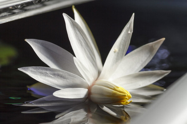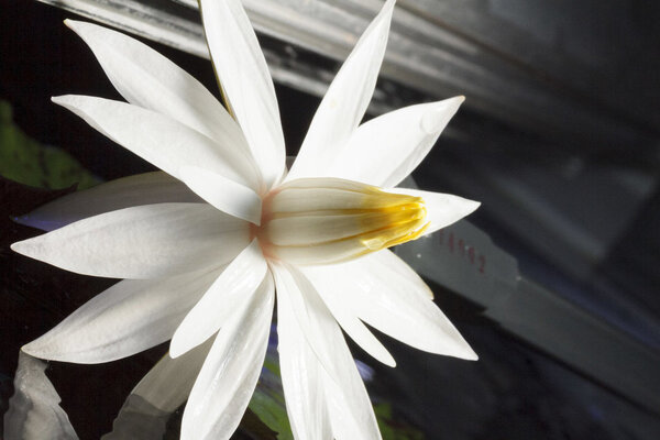 Vandaag voor de allereerste keer een bloem van de groene tijgerlotus, welke naar het oppervlakte is gekomen in de afgelopen dagen en vanavond laat is uitgekomen!