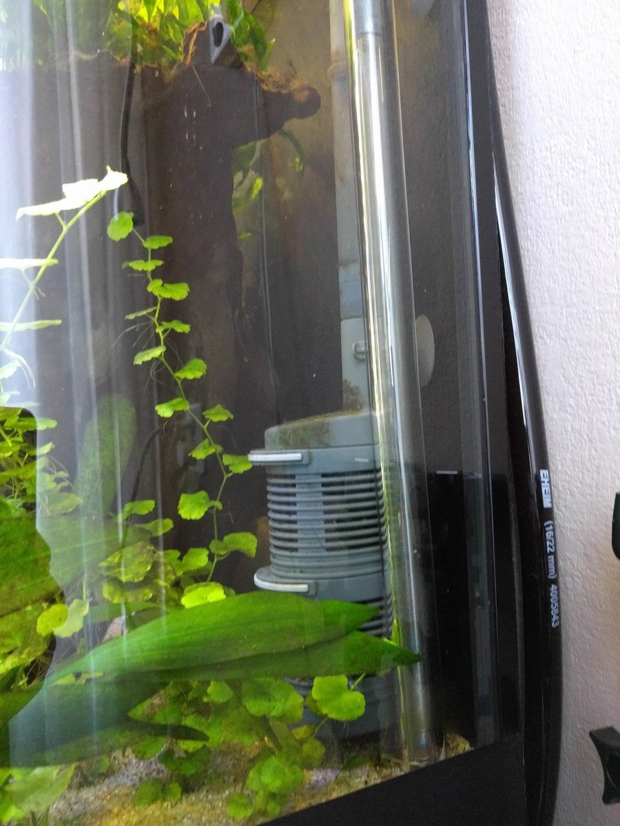 Eerst stond de plant wat verder naar achteren, maar vanaf opzij gezien is dit een veel betere locatie en zo kan ik ook nog iets beter bij mijn voorfilter bij de wekelijkse schoonmaak, dus ik begin tevreden te zijn.