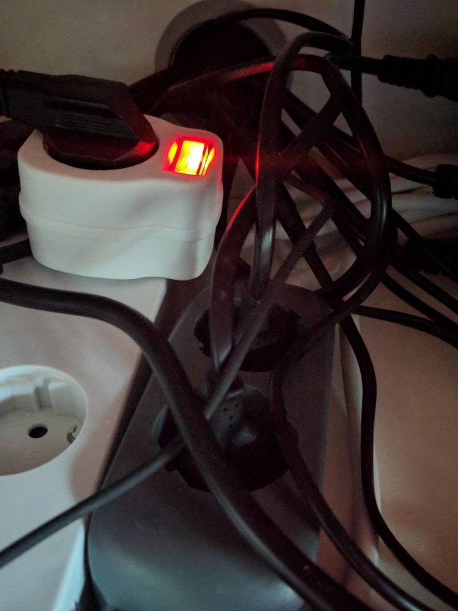 Ik zou het stekkerblok met powertape boven aan de zijkant plakken