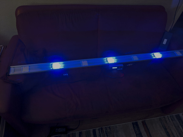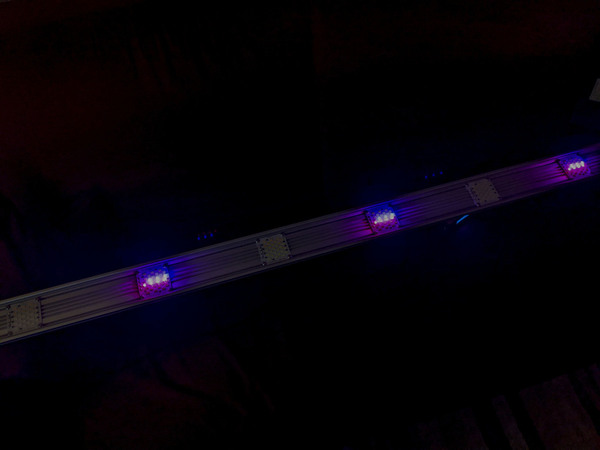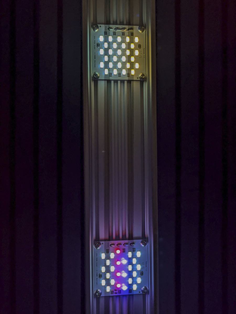 Wat je hier duidelijk ziet is dat het licht niet mooi over het midden van de bak is verdeeld. De JMB balken hangen heel erg ver naar voren en achteren, en de EASY LED hangt ook nog wat naar voren toe, wat ik persoonlijk dus geen ideale indeling vond en wat mede oorzaak was voor mij om naar een andere oplossing te kijken.