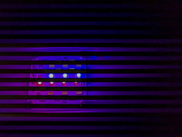 Detail, sluitertijd ligt onder de aan/uit frequentie van de leds, dus daarom inclusief zwarte balken