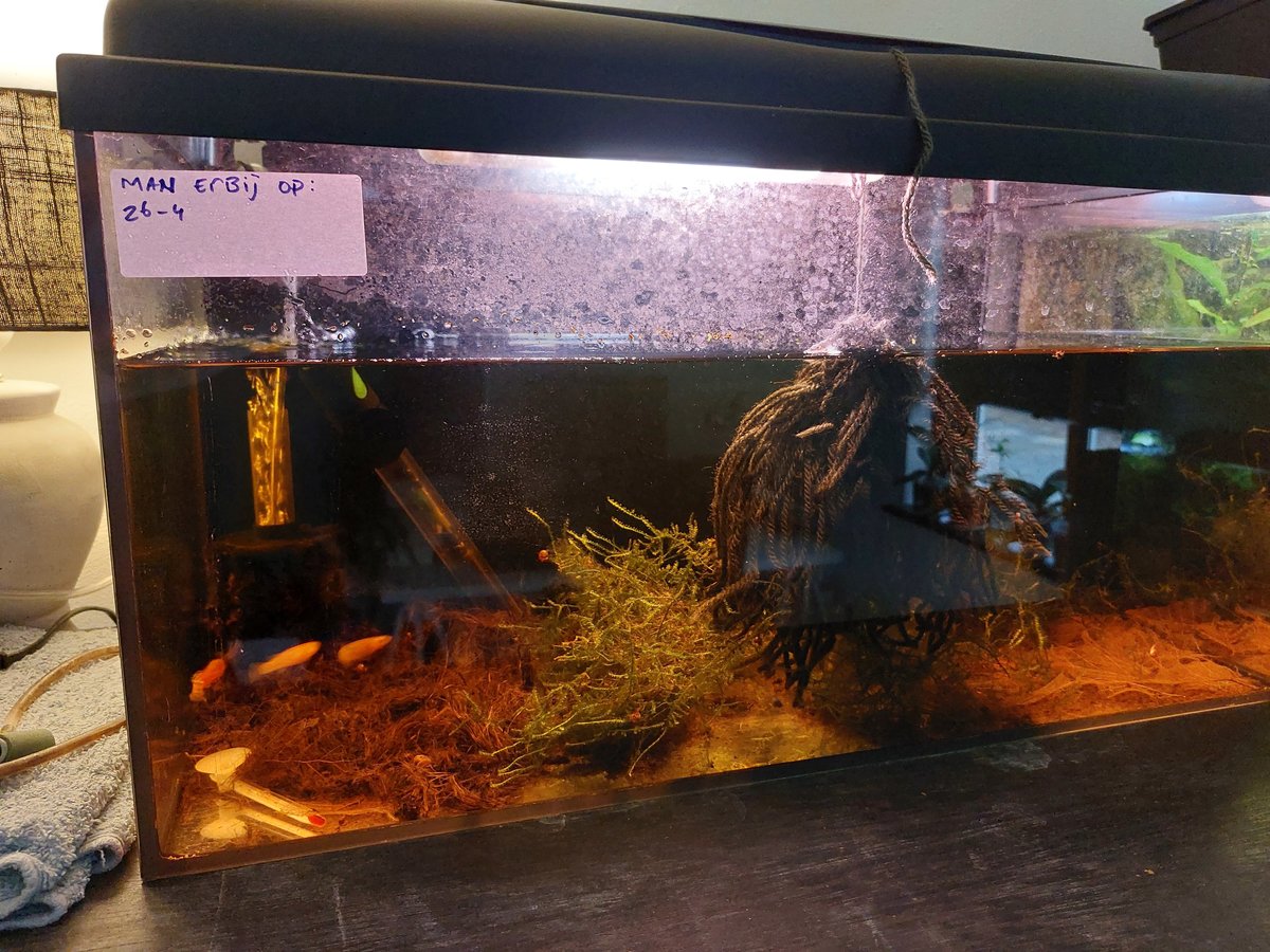 Ik heb incubatie in water geprobeerd, op vochtig turf en op vochtig kokosvezel. Ik ben nu een kweek aquarium aan het opzetten zodat ik met een duo of trio doelgericht kan kweken.