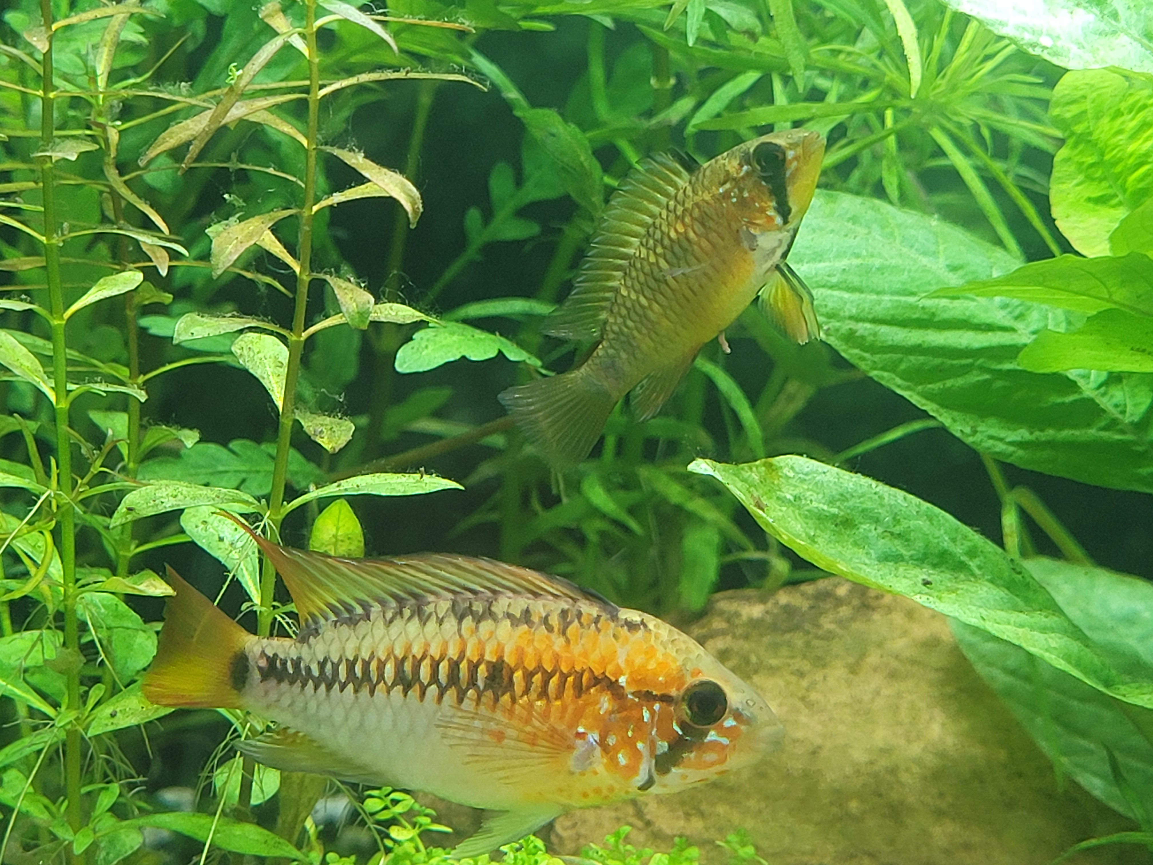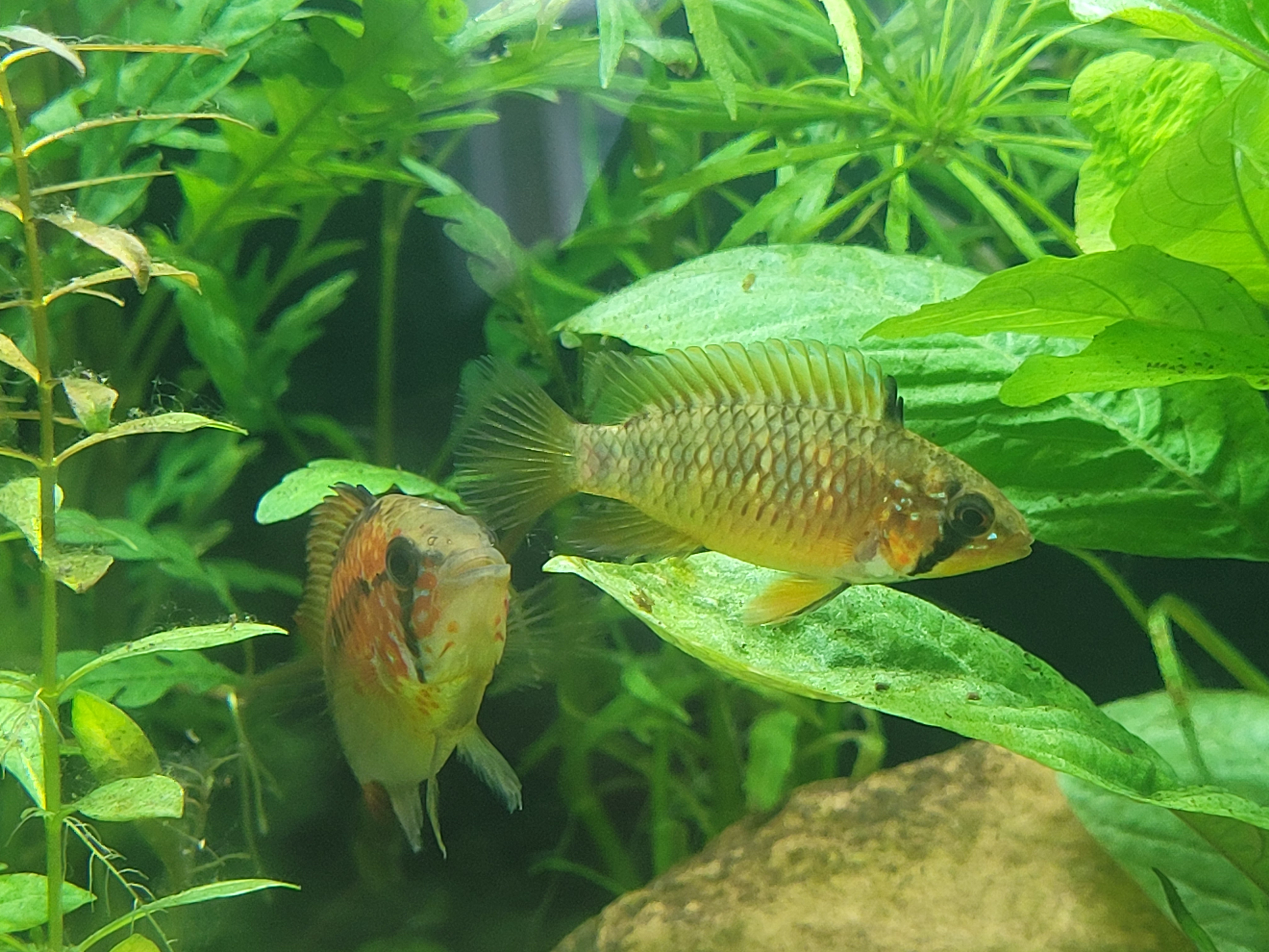 Hierbij hulp gevraagd bij de specifieke identificatie van mijn Apistogramma koppel. Ik heb het onlangs gekocht in een aquariaspeciaalzaak, maar hier stond de soort niet bij. Na kort internetspeurwerk kwamen we bij Apistogramma Macmasteri. Zijn er hier kenners aanwezig die dit kunnen bevestigen (ook eventuele specifieke kleurrichting)?