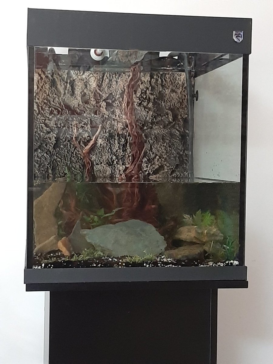 Wij hebben een aquarium van +- 120 liter. Hij is erg hoog, maar niet heel breed.