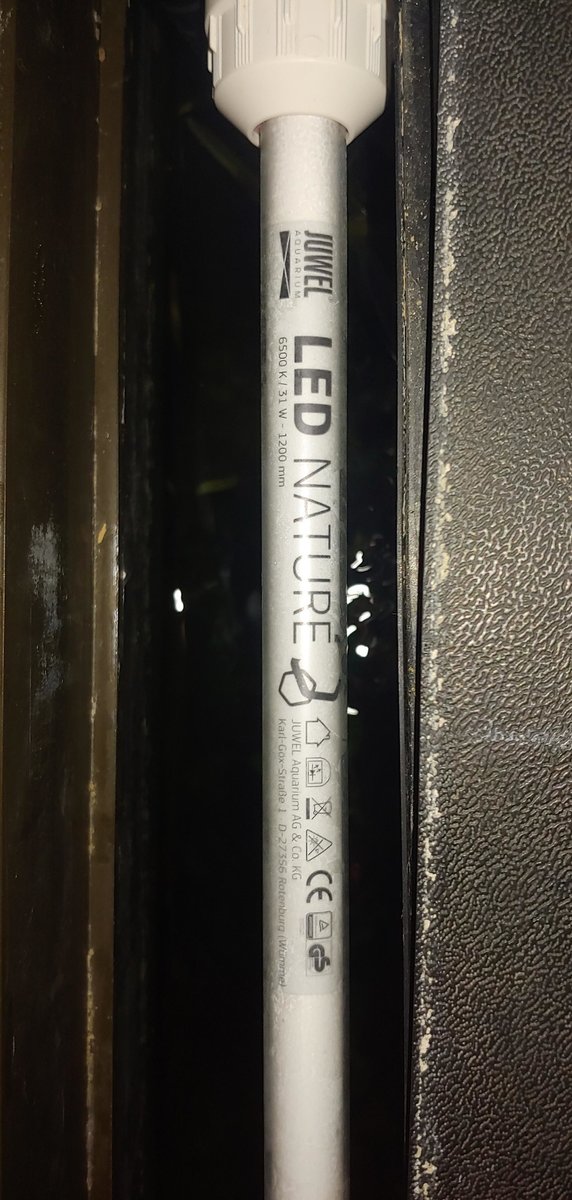 dat is nog is een bak informatie, het is inderdaad een tweetal die ik aanheb maar ik heb mocht het nodig zijn nog een tweetal dat lijkt me alleen niet slim met alle algen etcDit zijn Juwel ledbuizen. Multilux om precies te zijn. Ik neem aan dat je de Juwel Rio 450 aquarium hebt? Met de standaard ledverlichting? Dan zullen dat een tweetal 120 cm. multilux ledbuizen zijn, nature en daylight. Je zal een Kelvinwaarde van gemiddeld rond de 7500 hebben. Nu is je bak 66 cm. hoog wat maakt dat je verlicht wel behoorlijk moet inleveren alvorens de bodem is bereikt. Je zou met je twee lampen in totaal 6670 lumen tot je beschikking hebben. Voor gemiddeld licht vragende planten moet dit voldoende zijn ook al omdat je geen CO2 wilt gebruiken. Je kan daarbij denken aan Aponogeton longiplumelosus of een ulvaces, Cryptocorynes, Echinodorus, Javavaren Cabomba's, Belgisch groen Tijgerlotussen en Anubias. En zo zijn er nog wel meer te noemen. Kijk maar eens bij de online aanbieders, zij geven meestal al wel aan wat een plant vraagt om een goede groei mogelijk te maken dus ook de lichtsterkte. Hou het bij planten met een gemiddelde lichtsterkte of minder.