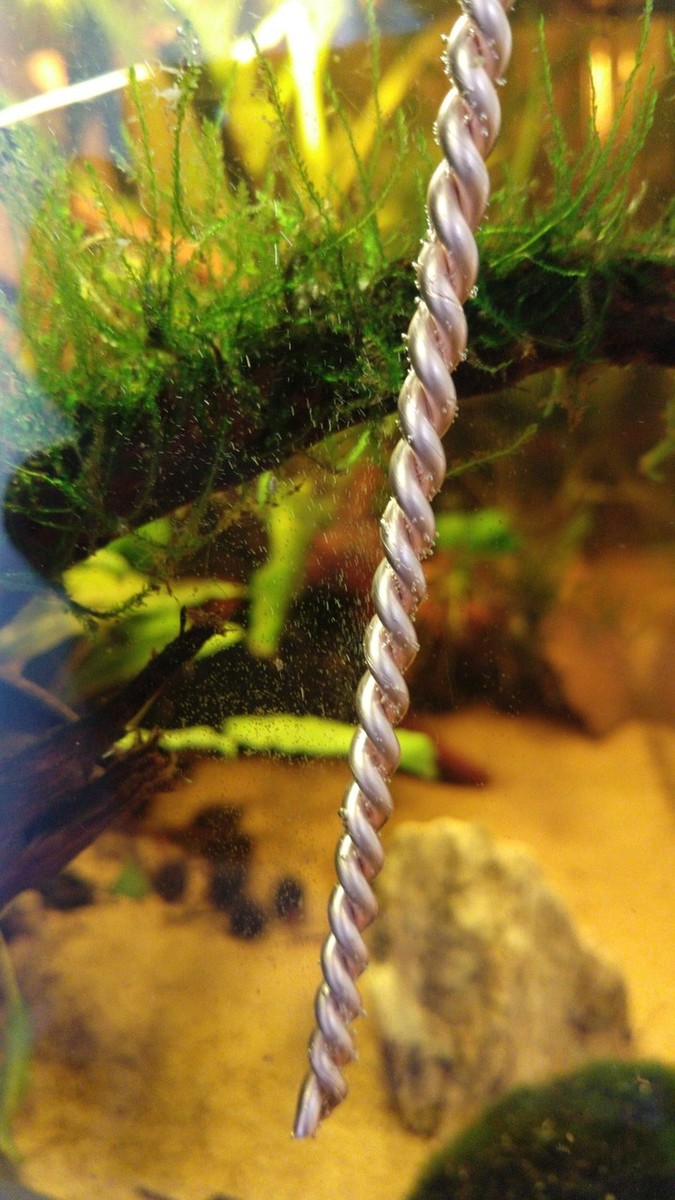 Ik zag dat flubenol deze makkelijk dood, maar helaas heb ik (appel)slakken in de bak. Eruit halen is ook geen optie want schijnbaar blijft het lang in/op de bodem actief en zijn appelslakken er gevoelig voor. Toen las ik een andere methode. Met een 9 volts batterij.