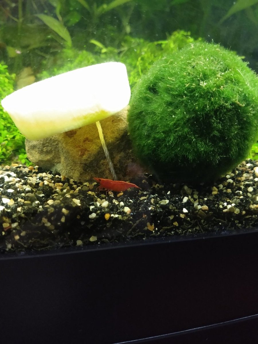 Ik merk wel dat de garnalen een stuk relaxter rondzwemmen. Die hadden er toch last van.
