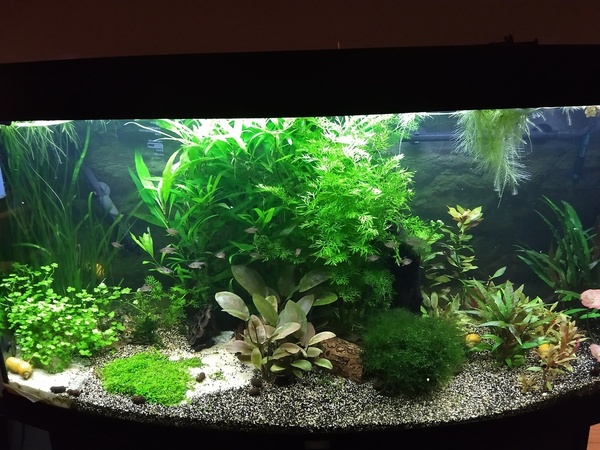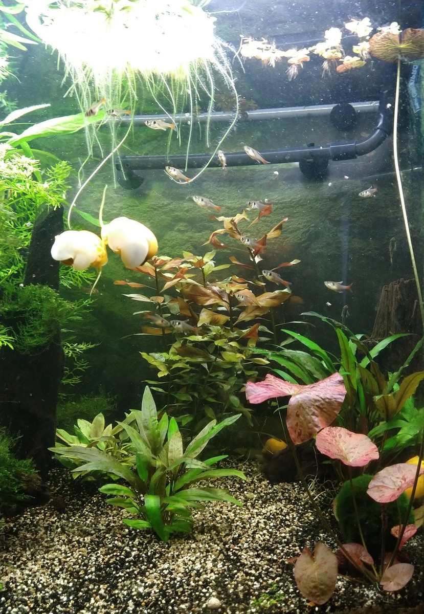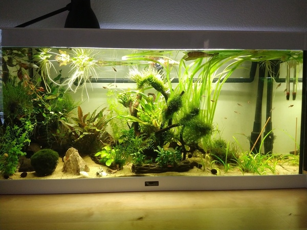 Het aquarium oogt veel rustiger naar mijn idee.. Links kwam ook te weinig licht op de bodem (door de Ludwigia). Hopelijk gaan mijn bodemkruipers het wat beter doen.