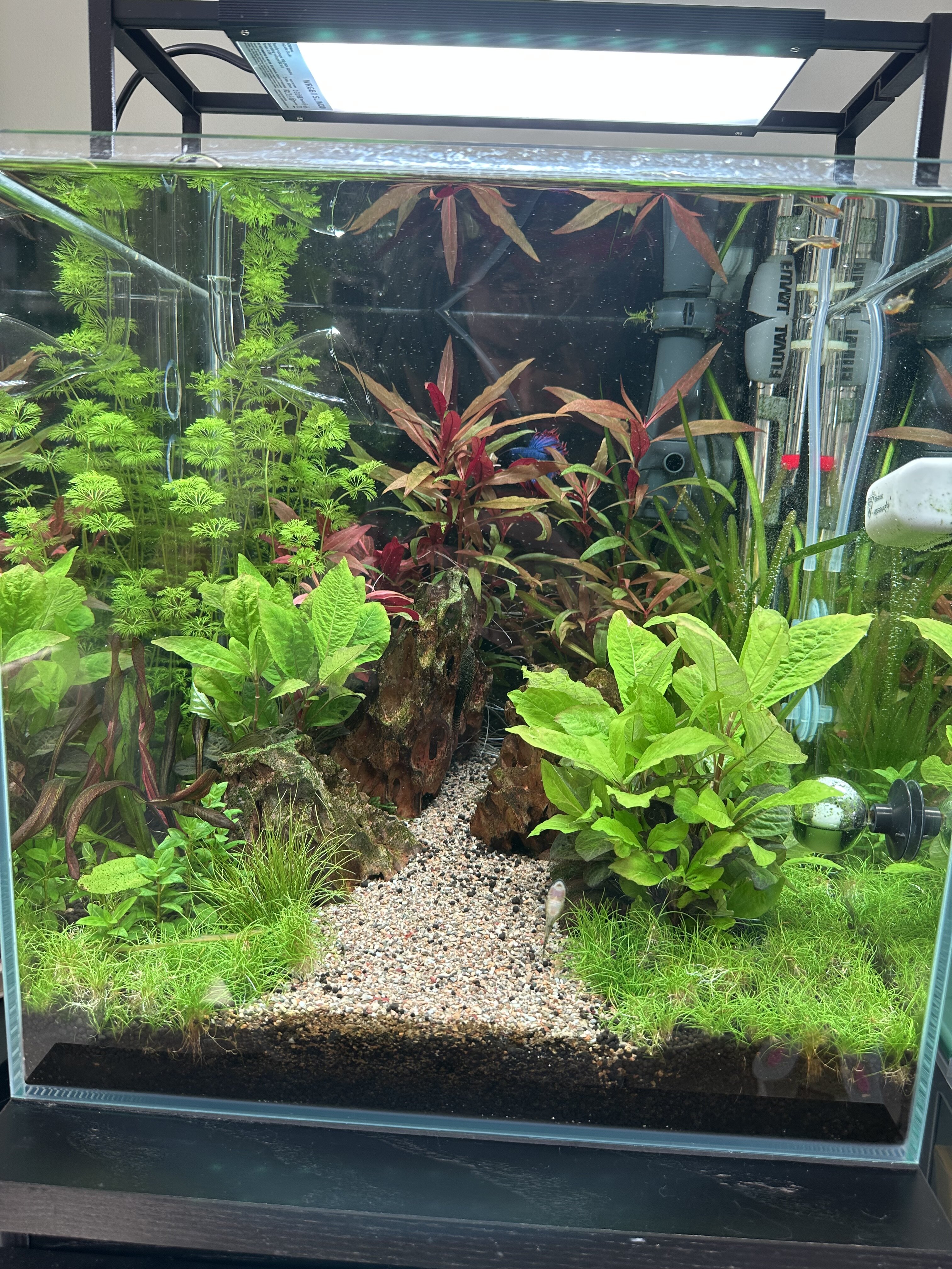 ik had een wat lastige start van het aquarium maar na wat goede tips hier op het forum draait het aquarium nu goed. Ik voeg dagelijks de APT3 toe in combinatie met Co2 en Colombo fora Carbo. Ik ben heel Benieuwd hoe de bak zich verder gaat ontwikkelen de komende maanden😎