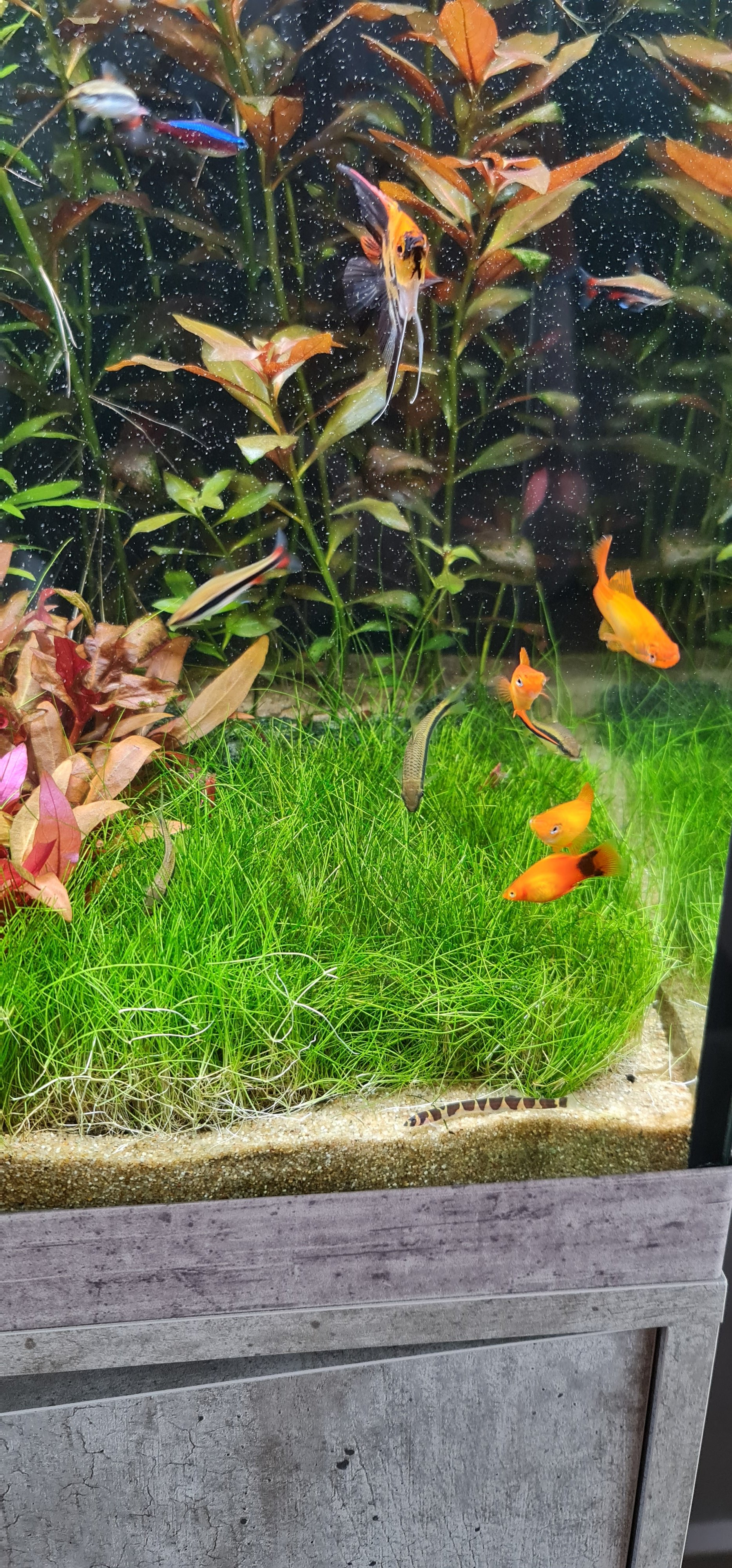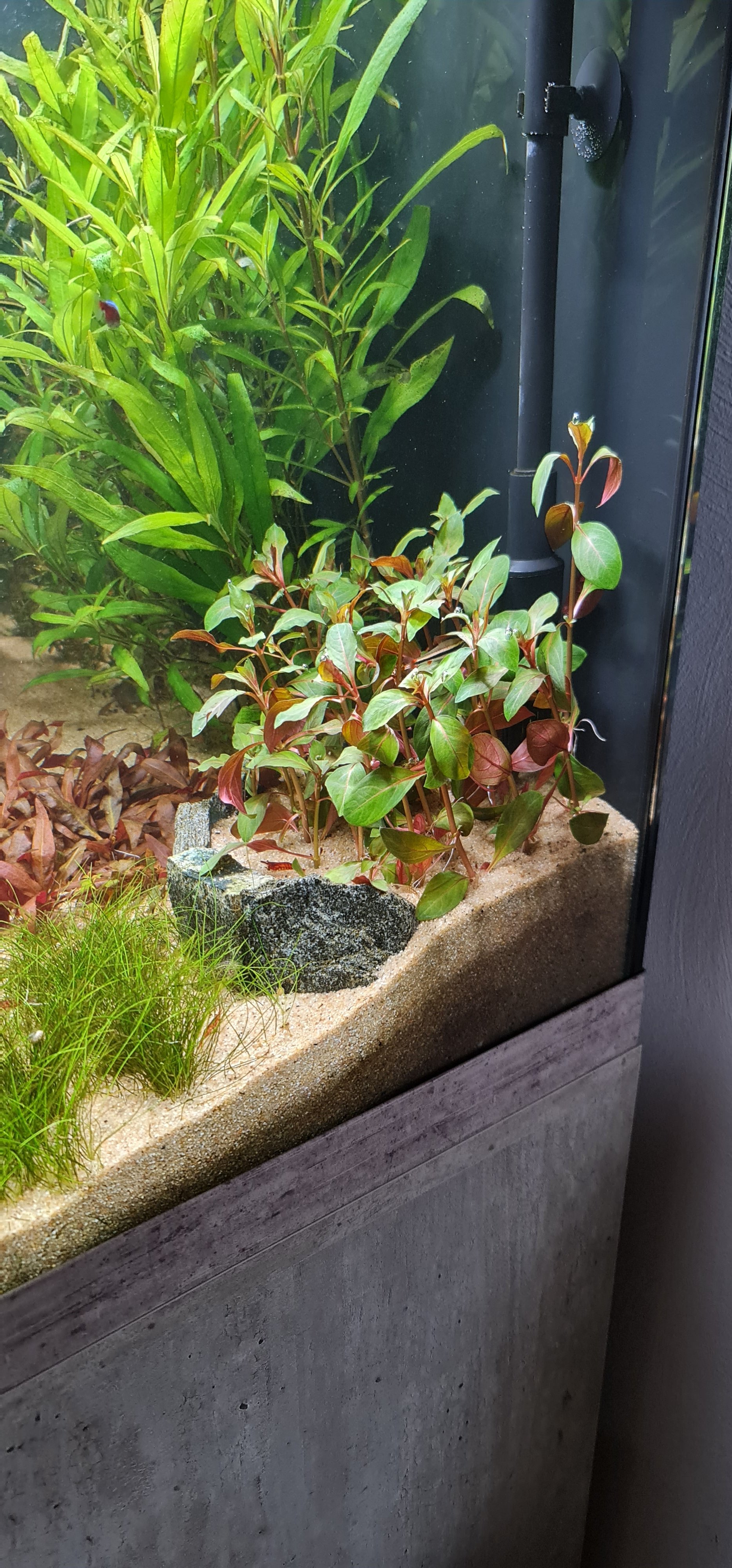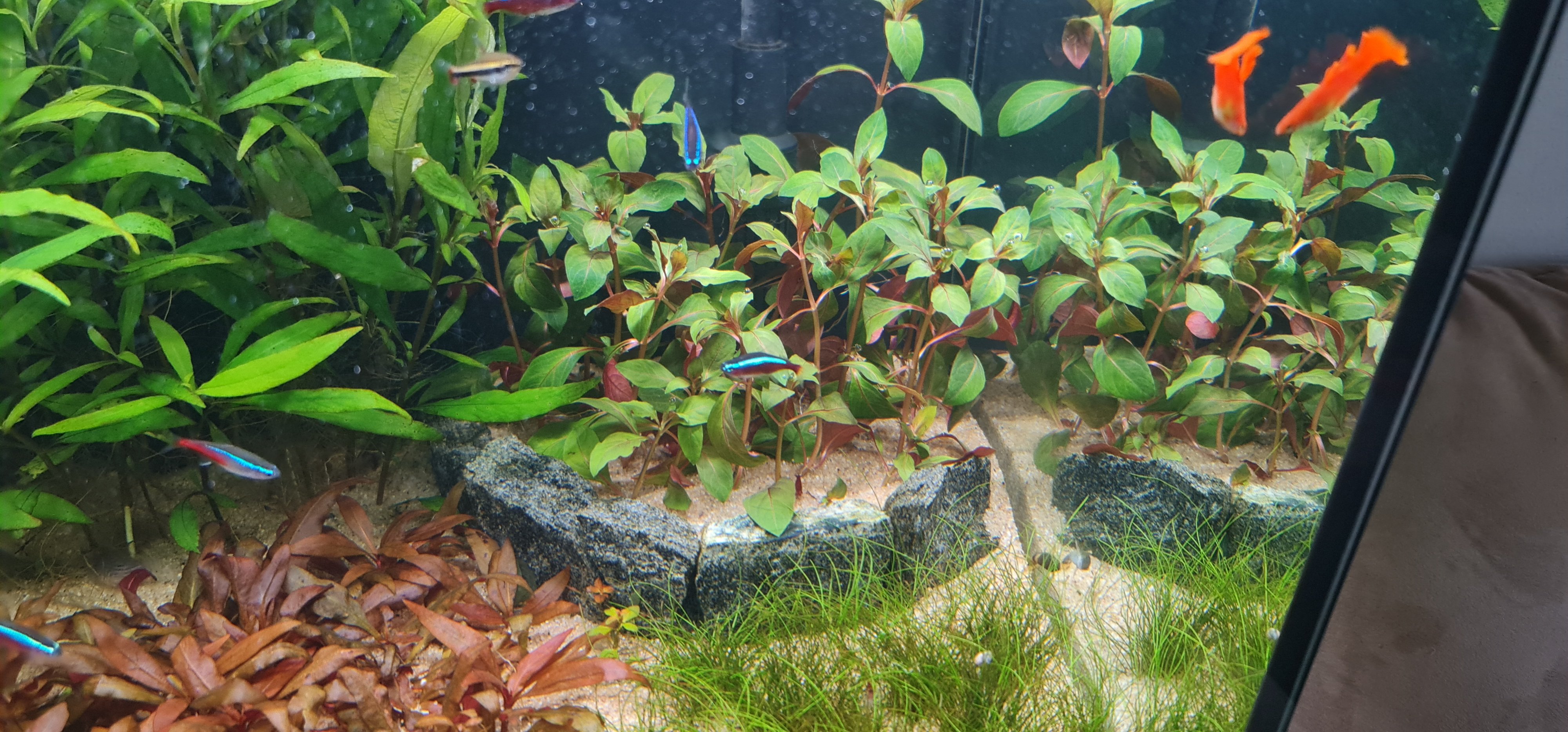 Kwa planten is er wat veranderd en ze zijn hard gegroeid ook is er een extra pomp gekomen en de achterwand is zwart gemaakt.