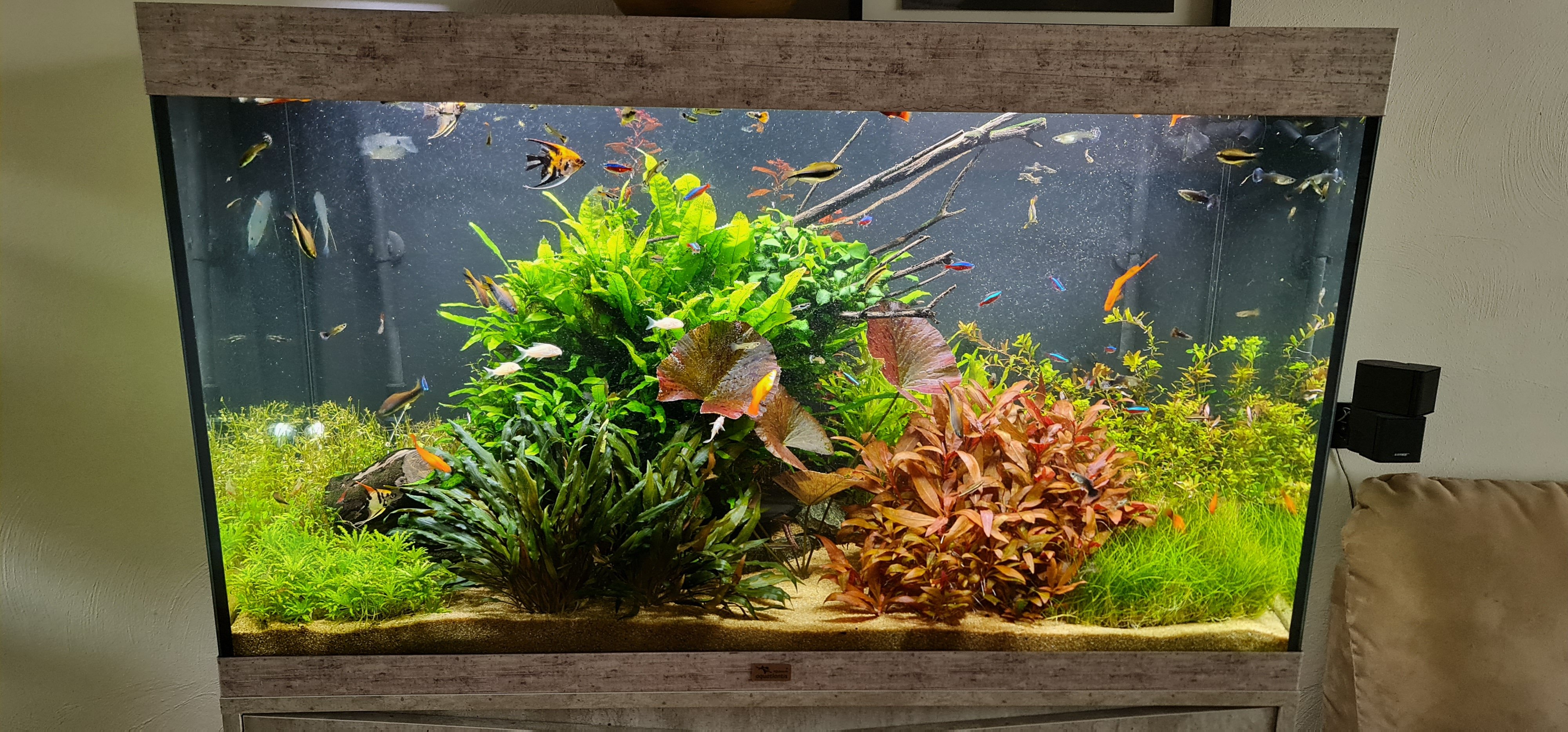 Mooie beplantte bak, maar ben je niet bang dat het aantal vissen te groot wordt met deze aanvulling? Zo te zien zit er al redelijk wat vis in.