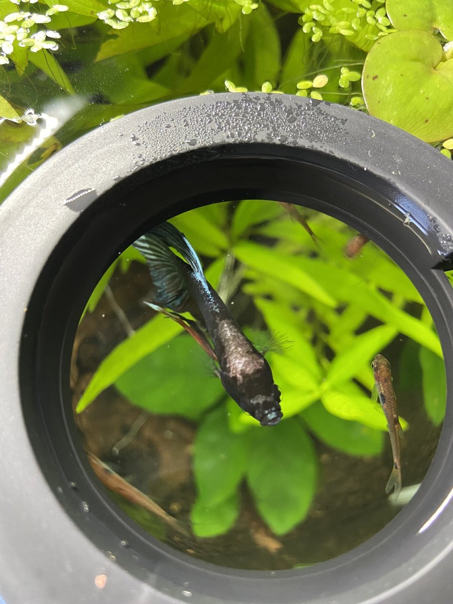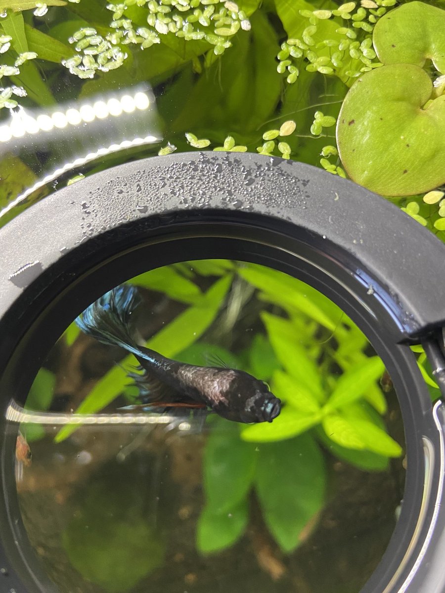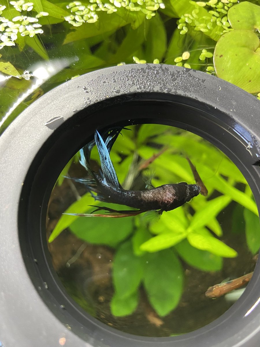 hij eet goed, is nog steeds actief en zwemt naar me toe als ik bij de bak sta.