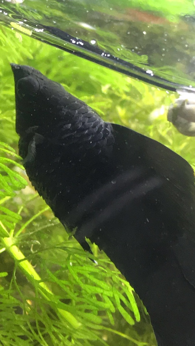 Ik keek gisteren en van heel dichtbij en zag dat hij enorm dik was en zijn schubben openstaat…