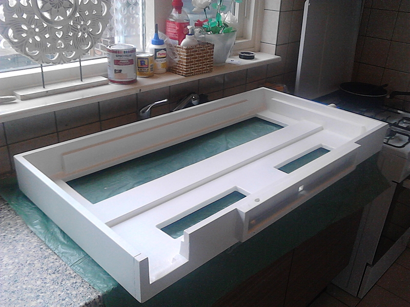 Dat was de binnenkant van de kap, die is inmiddels goed glad.Komt omdat je de boel niet heb afgedicht en meteen met lak eroverheen bent