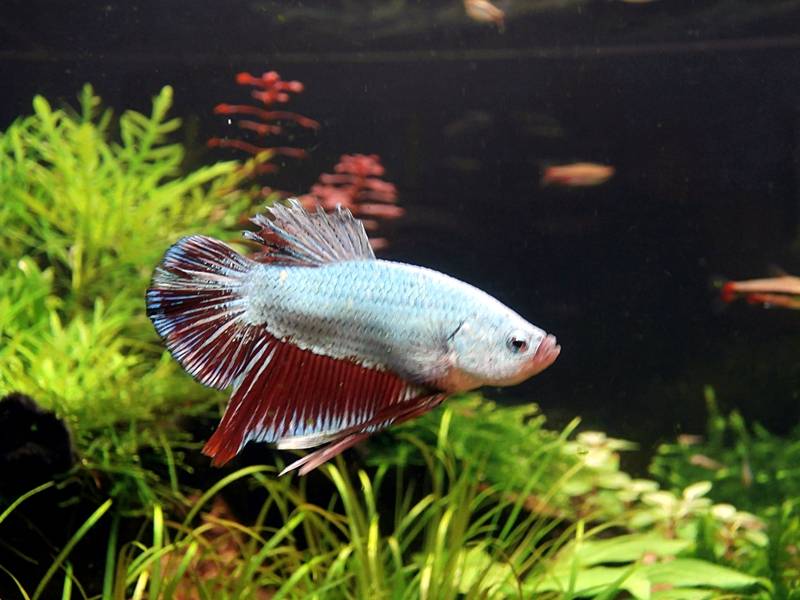 Ik was van plan om een Dumbo Female Betta aan te schaffen, maar eenmaal in de winkel zag deze....lijkt bijna wit maar in de bak is ie lichtblauw.