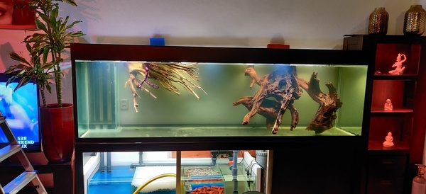 Er zit nu dus 50% 2wk oud water in wat ingedraaid heeft op het hout en 50% kraanwater