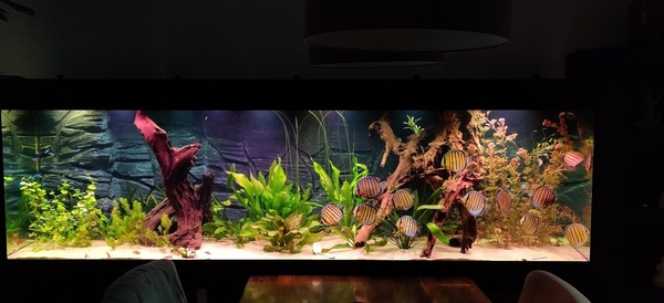 Wat ik uitermate mooi vindt is en zijn de 9 verticale strepen/banden,die lopen bij bij alle vissen recht zonder Y splitsingen,die je echt heel vaak zie bij de meer algemene ( doorgekweekte) Discusvissen,dit is een bijzondere vorm van en kwaliteit,super uitgezocht Rjoemman.