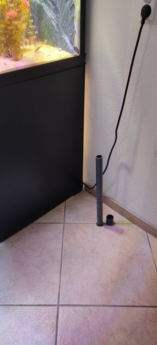 Dat ding is besteld maar nog niet binnen. De aanvoer zal onder de keukenkast lopen naar het aquarium.