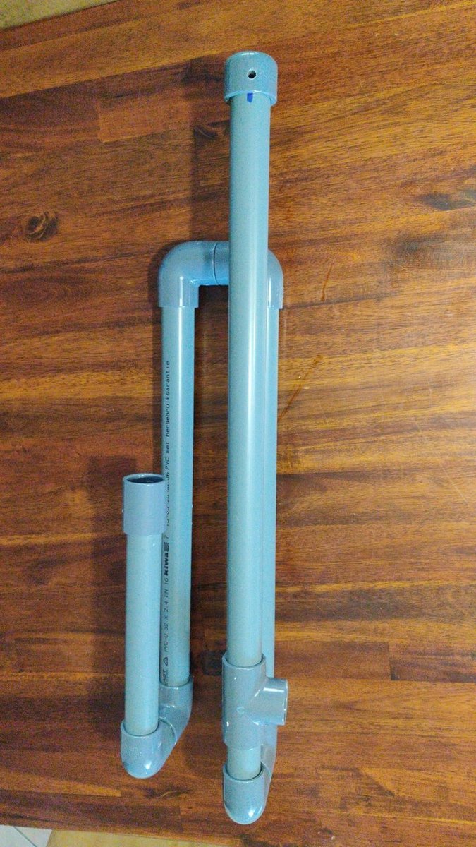 Aaai ik weet niet of 32 mm genoeg gaat zijn om 5 liter per uur af te voeren hoor 😉