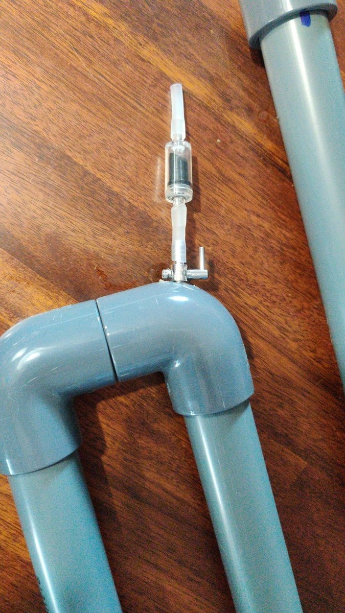 Er moet nog een aanzuigslangetje aan om de hevel in beweging te krijgen.