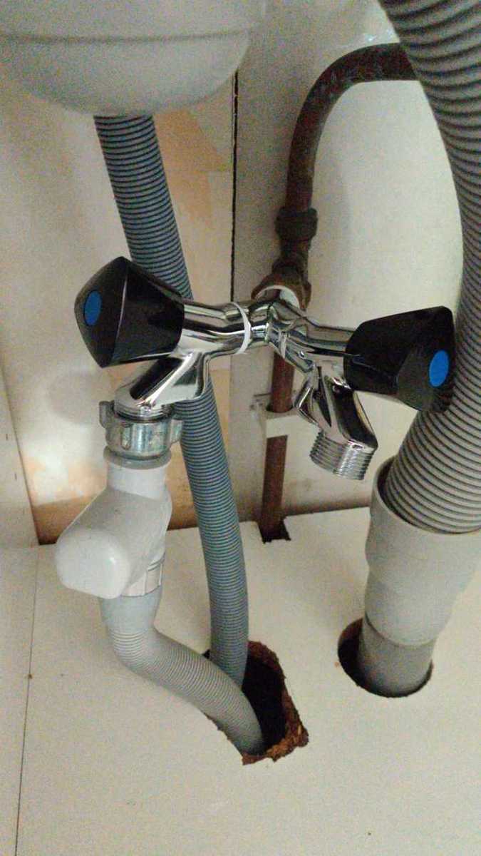 Ik heb van 1 wasmachine kraan een dubbele gemaakt.