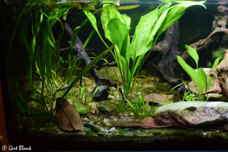 Ik gebruik meestal bladeren en botanicals in mijn bakken. Ik had onlangs er een groot blad in gedaan wat veel kleur afgaf. Maar bak is in principe best helder. Normaal in de 2m bak had ik het donkerder.
