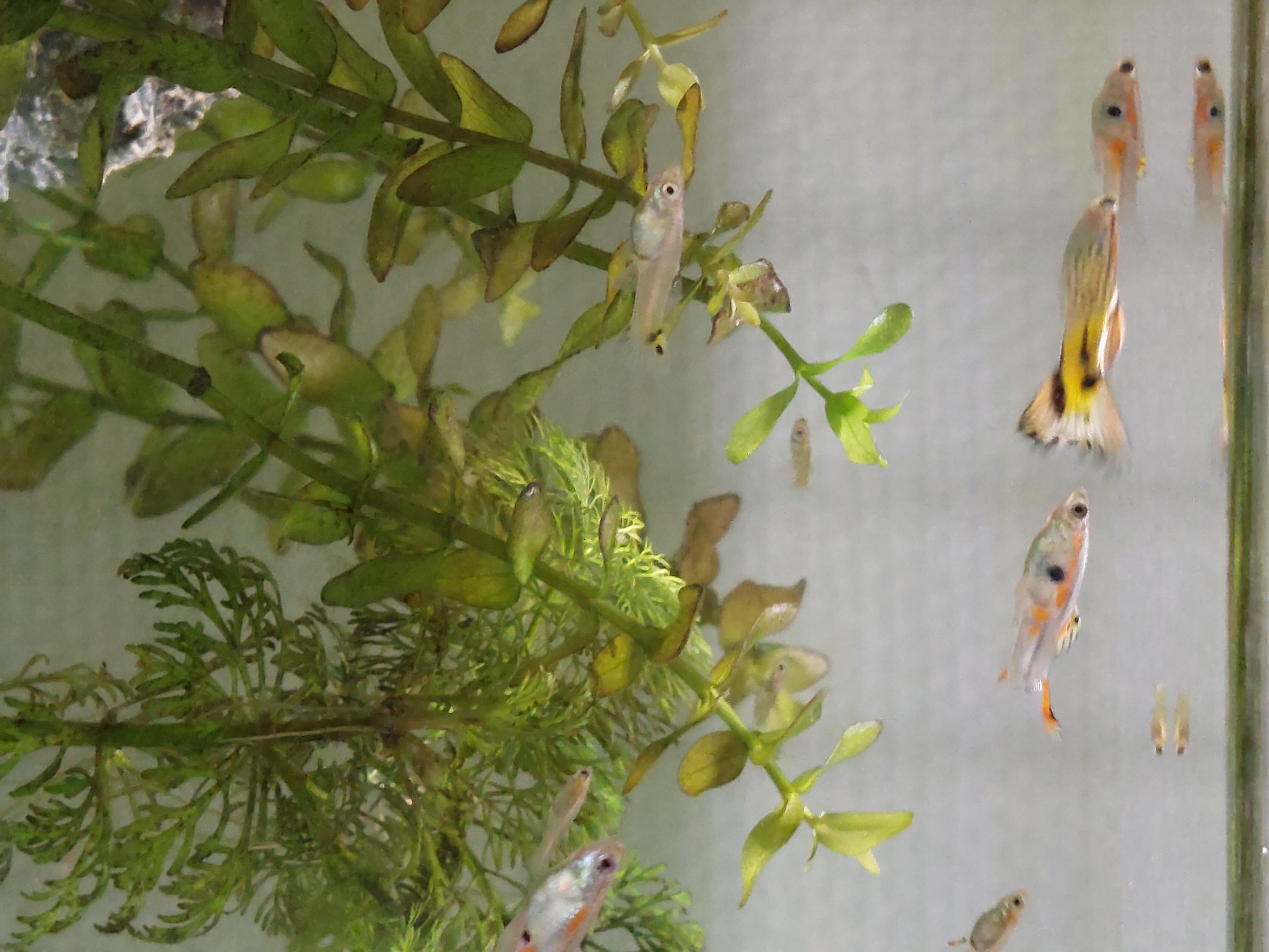 - 5-10 (onzeker over het exacte aantal) Oranje, blauw, geel gevlekte mannetjes