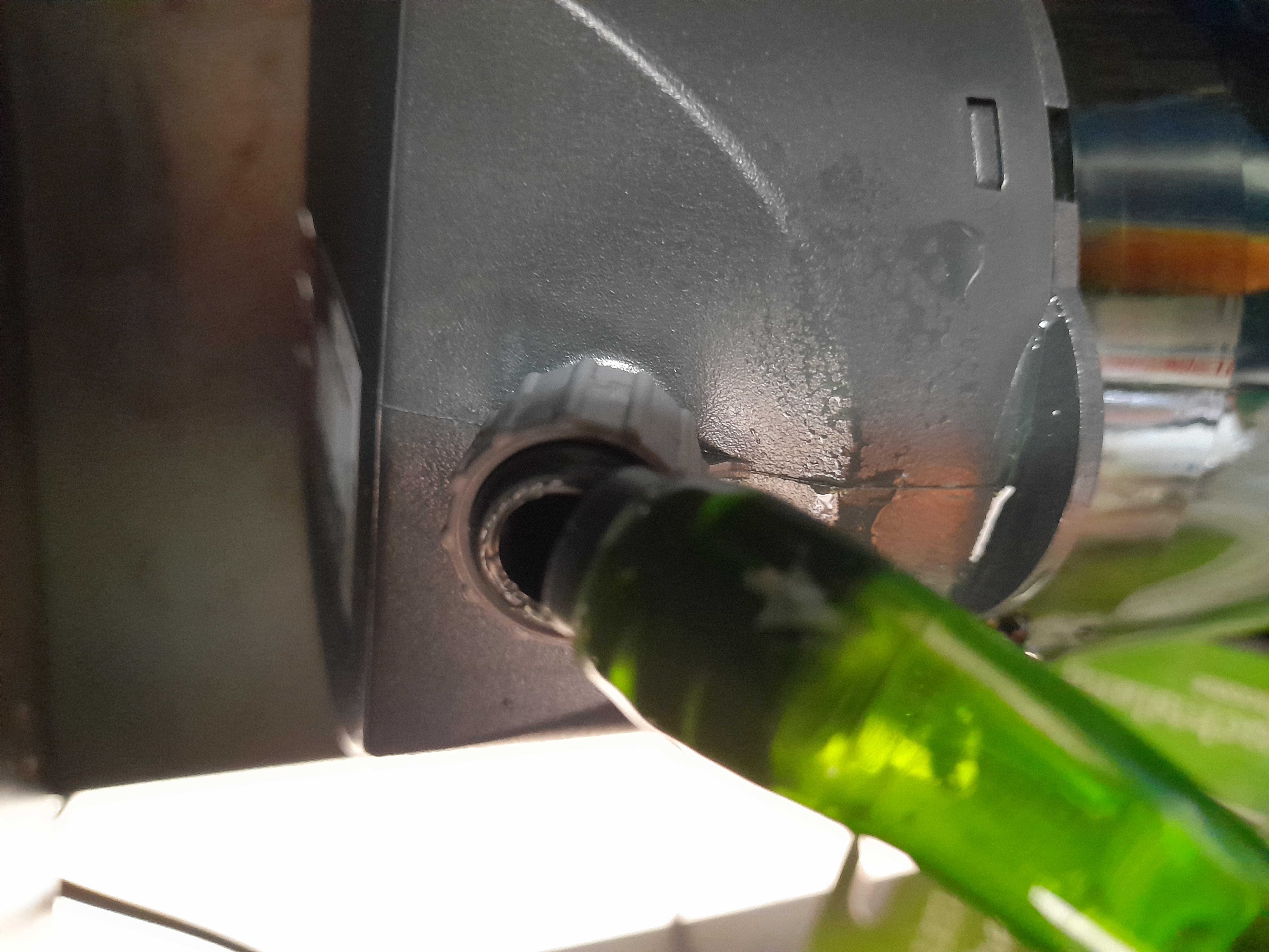 De ene kant van het filter zit nog in het water, vond teveel gedoe om dat eruit te halen maar ja. Anders kan ik de spons die nu in het oude filter zit wel weer even in de buitenfilter doen als die weer goed werkt met de nieuwe motorkop.