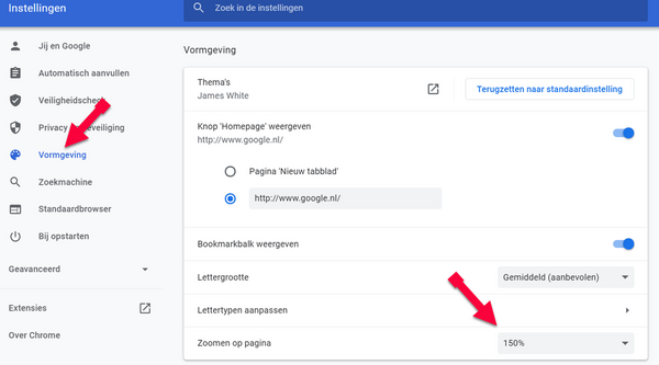 Ik heb Chrome altijd op 150% van de originele grote staan omdat ik als het kleiner is moeite heb met lezen.