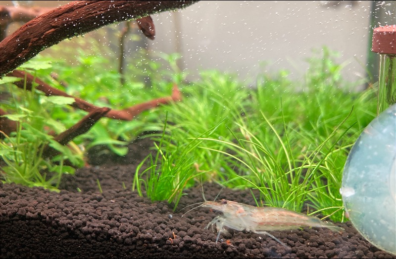 Typisch is dat toch. De garnalen zie ik nooit langs het glas, wel zwemmen langs het glas maar verder niet.Ja als ik bij de garnalen al wat algjes zie dan is dat ook juist vaak in die rondigen aan de voorkant en misschien heeft dat iets met de circulatie van doen.