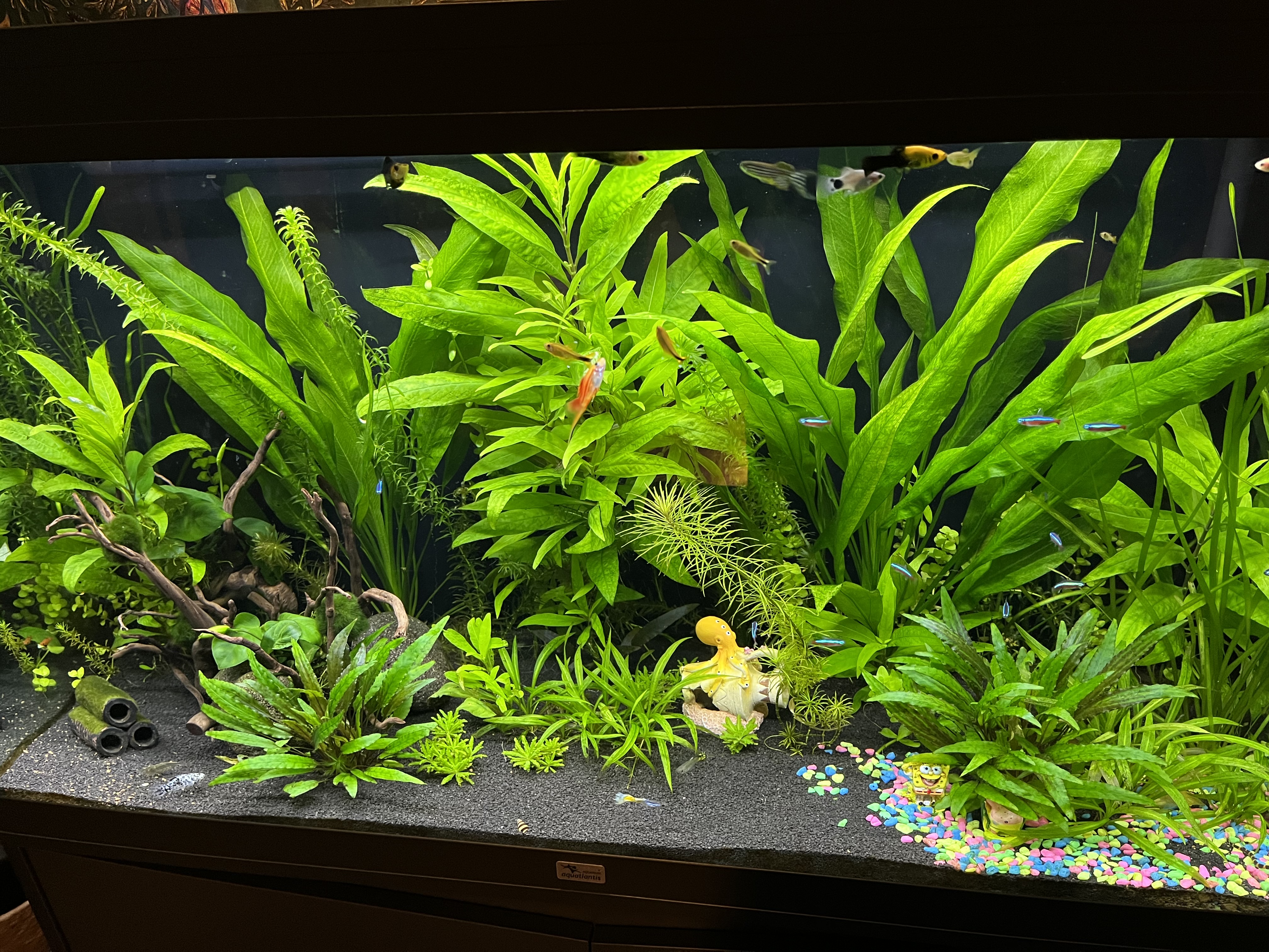 Nu is er recent een ballonmolly en een dwerggourami ter zielen gegaan en deze vissen zwommen echt relaxed door de bak.