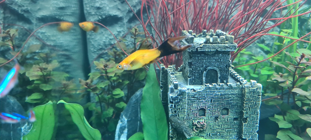 Op de foto, is dit een zwaarddrager, of een totaal andere vis? Gekocht uit de bak met zwaarddragers, maar kan nergens een soortgelijke vinden (sluierstaart)... ben benieuwd!
