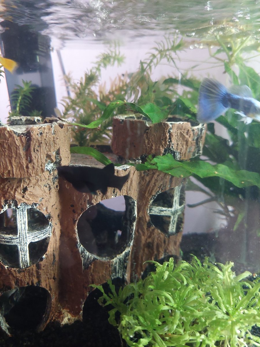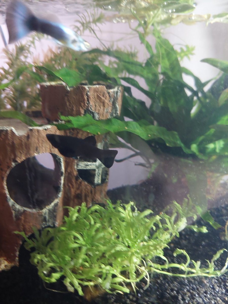 Toen ik na een paar dagen m'n Molly's eens goed bekeek begon ik al te twijfelen of dit wel mannetjes waren aangezien mijn guppen een duidelijk staafje hadden aan de onderkant en mijn Molly's toch echt gewoon een vin 🥴