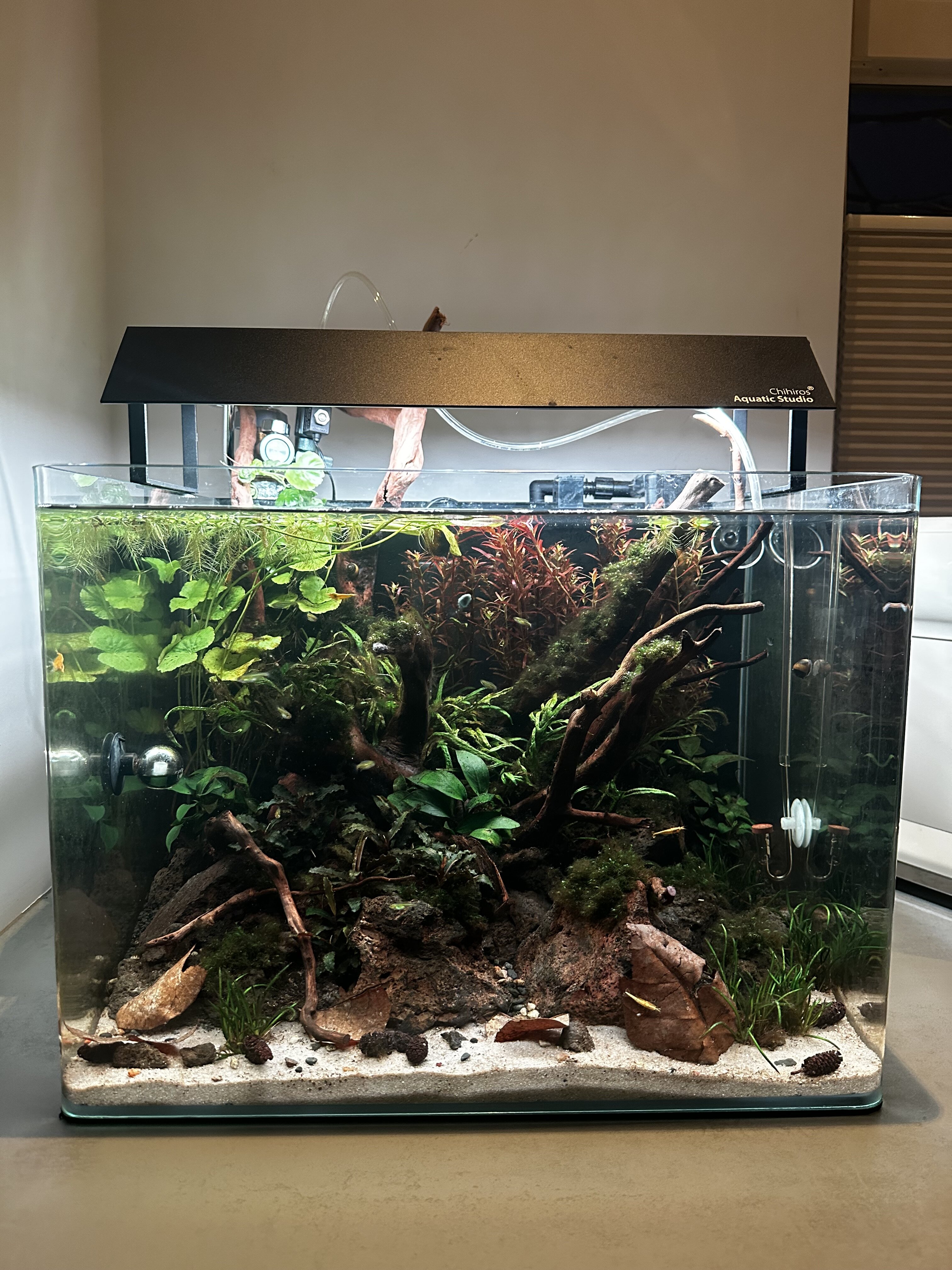 Hallo allemaal. Ik heb nogmaals jullie hulp nodig. Inmiddels draait het aquarium 6 weken en zitten er wat neocaridina garnalen in + 10 Rasbora kubotai. Waterwaardes zijn helemaal in orde en de algen in een vorige post zijn een stuk minder. Nu heb ik nog wel steeds last van een kaamlaag. Deze probeer ik elke dag weg te halen maar hoelang kan dit nog aanhouden? Er zit spiderwood in de bak waar ook nog steeds een kleine schimmel van af komt maar niet heel veel meer. Ik vroeg me af wat normaal is voor een opstartend aquarium. Ik kan me niet herinneren dat ik dit vroeger ook had in mijn jeugdjaren.