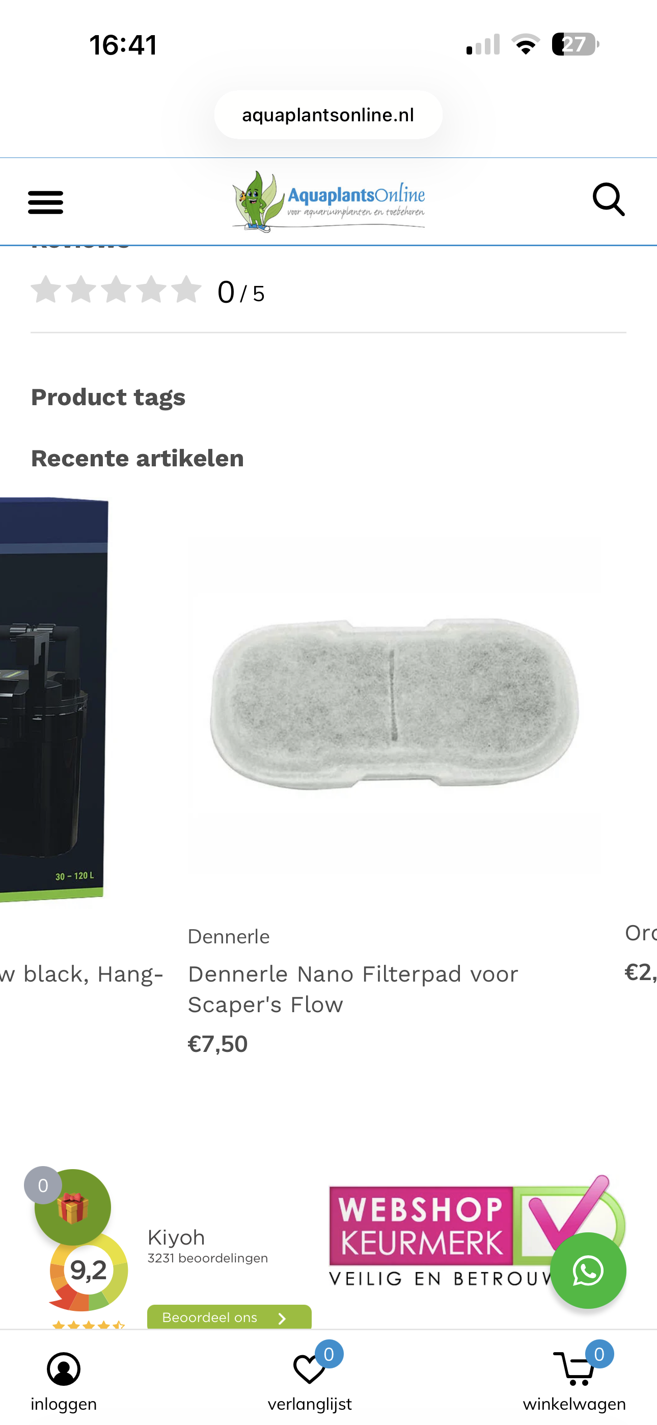 Er zitten drijfplanten in sinds vorige week. Groeien erg hard. Ik zit het filter ‘s avonds omhoog zodat er meer oppervlakte beweging is. Overdag niet wanneer de co2 aanstaat anders ben ik dat snel weg. Heb een filter met Lily pijp