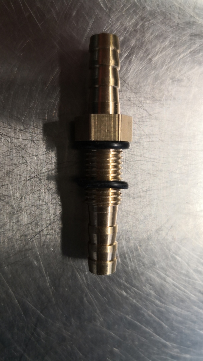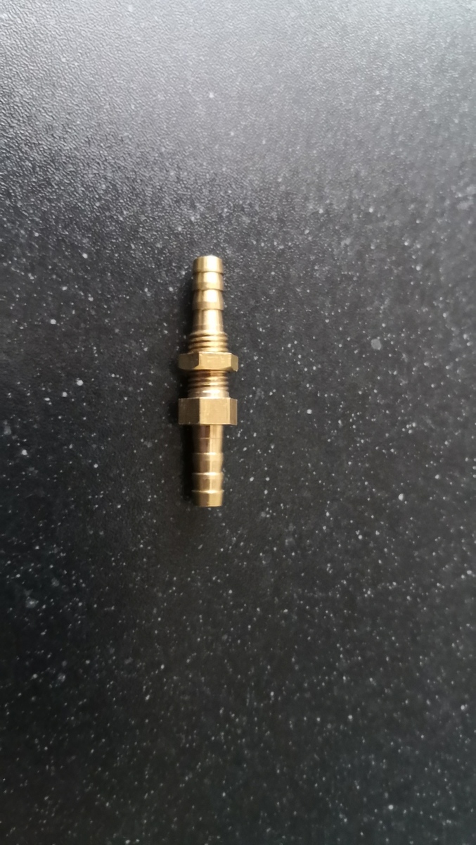 Ik heb het koppelstukje nog met epoxy ingesmeerd voordat ik het vast heb gedraaid. Dan zit er ook gelijk zo'n borgmoertje op je co2 slang.
