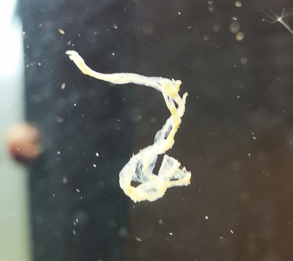 Wel heb ik nog geen worm gezien in deze bak. De enige link die ik nu met camelanus wormen heb zijn eigenlijk de posthoornslakken die uit mijn met camelanus geinfecteerde andere aquarium komen, en mogelijk de goudvis hebben besmet toen ik ze in mijn goudvisaquarium gezet heb. En als symptoom de ontlasting die niet goed is.