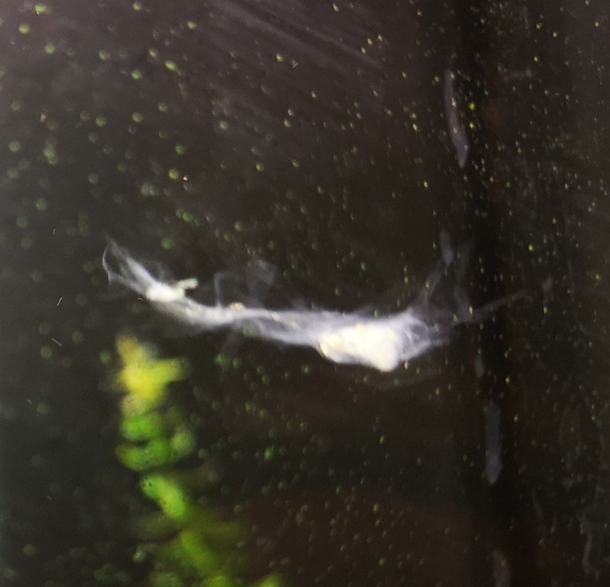 Ik blijf wel een beetje bezorgd, want de vis lijkt met momenten toch niet helemaal lekker. Ontlasting was vandaag weer niet goed. Wit, haast transparant. Losse schub op de bodem van de bak. Wel goede eetlust en ook de hele dag aardig actief, voor zijn doen. Maar die ontlasting (zie foto) zit me gewoon niet lekker. Vind de vis ook erg schrikachtig met momenten.