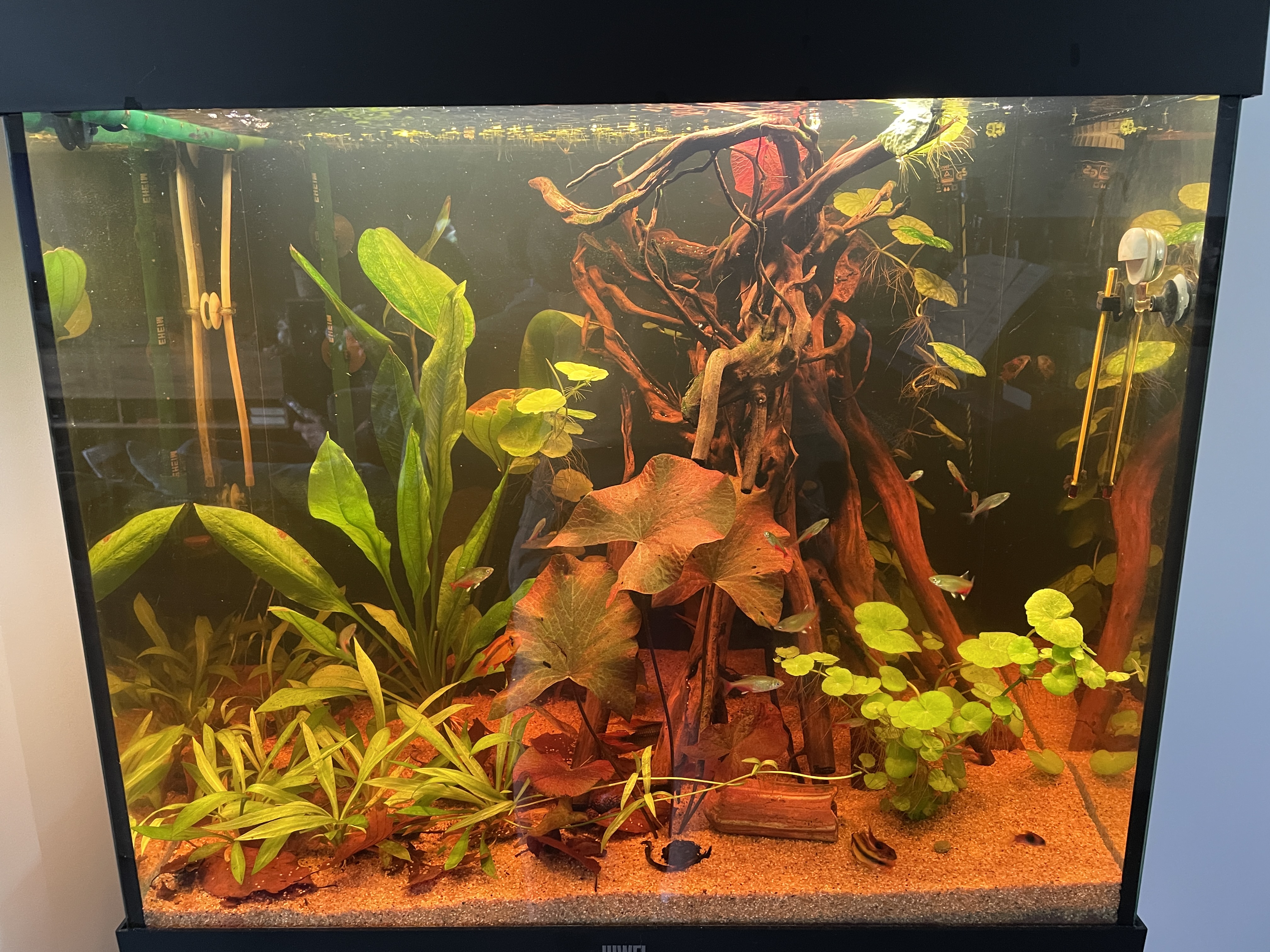 En de vissen en planren komen er mooier uit vergeleken met de Juwel Natur/Color lampen die ik er boven had. En het licht dringt dieper door in de bak.