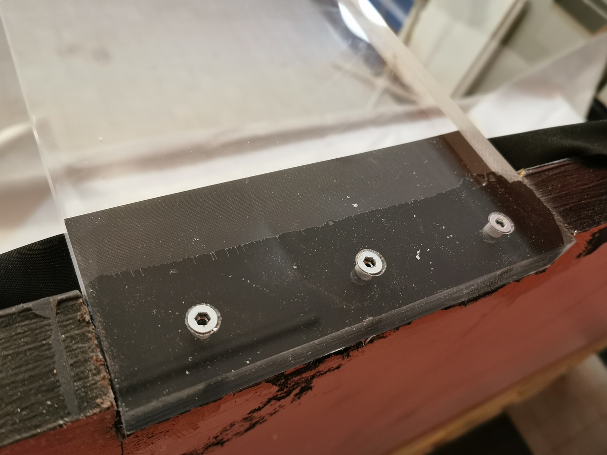 En dit is de staande hechting van het plexiglas met het hout.