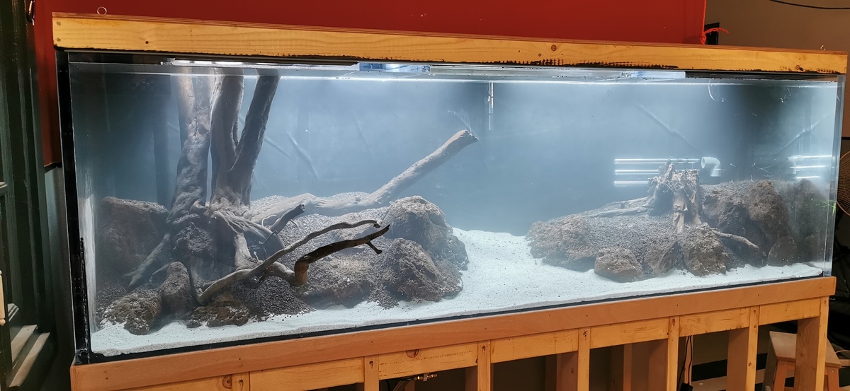 Wordt een 'planted tank' met CO2 garnalen en kleine visse (tetra's) of zo maar wat vis betreft weet ik het nog niet. Gaat in een koude hal staan en heb geen idee hoeveel stroom het kost deze bak te verwarmen.