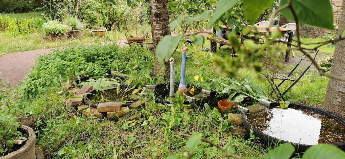 Dit was mijn vorige 'tonnen' vijver met een heel klein overloopjes (elektra pijp doorgeboord en dan wel weer vastgezet met EPDM). Dat was echt wel een succes!