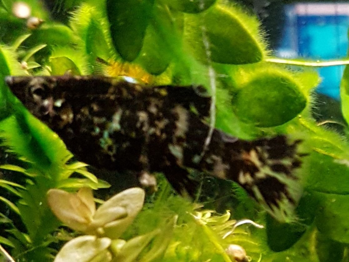 We hebben 3 volwassen vrouwtjes, 5 kinderen (1 peuter, 3 kleuters en een puber zeg maar, gebaseerd op grootte) en we hadden tot voor kort een mannetje die helaas is overleden. Dit gebeurde tijdens het eten, hij zwom samen met de vrouwen op het eten af, begon ineens te stuiptrekken en viel dood neer. Ik heb hem er direct uitgehaald en apart gezet maar toen was het al te laat. Ik weet niet wat hier gebeurd is en of het met het volgende probleem te maken heeft.